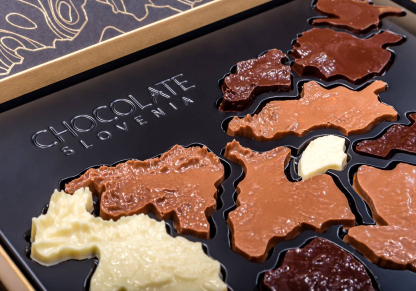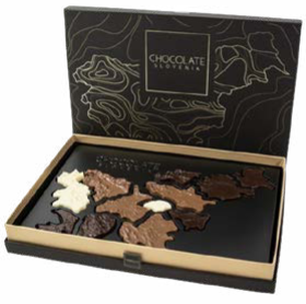 Čokoladna Slovenija je sestavljena iz dvanajstih ročno izdelanih koščkov čokolade, ki skozi svoj 3D relief in okus predstavljajo raznolikost naše države. Vsaka regija je unikatna in se od ostalih zelo razlikuje, prav tako kot deli Čokoladne Slovenije. Prepustite se okusom, ki vas bodo ponesli skozi čokoladno doživetje po Sloveniji.