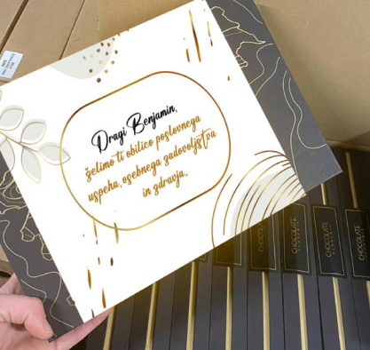 Iščete nekaj posebnega za vaše zaposlene ali poslovne partnerje? Ponujamo unikatna poslovna darila. Izbirajte med vrhunskimi čokoladami, premium sestavinami in izbranimi izdelki za peko, zapakiranimi v elegantno embalažo.