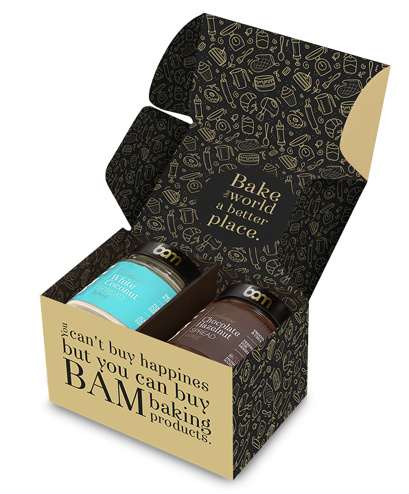 Darilni paket DUO namaz je popolno darilo za vse gurmane. V DUO namaz darilnem paketu lahko izberete dva okusna namaza, vključno z BAM Lešnikovim namazom, BAM Lešnikovim namazom s kakavom, BAM PREMIUM Kakavovim namazom ali BAM Belim kokosovim namazom.