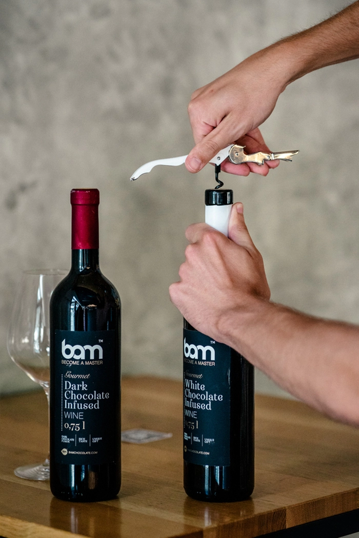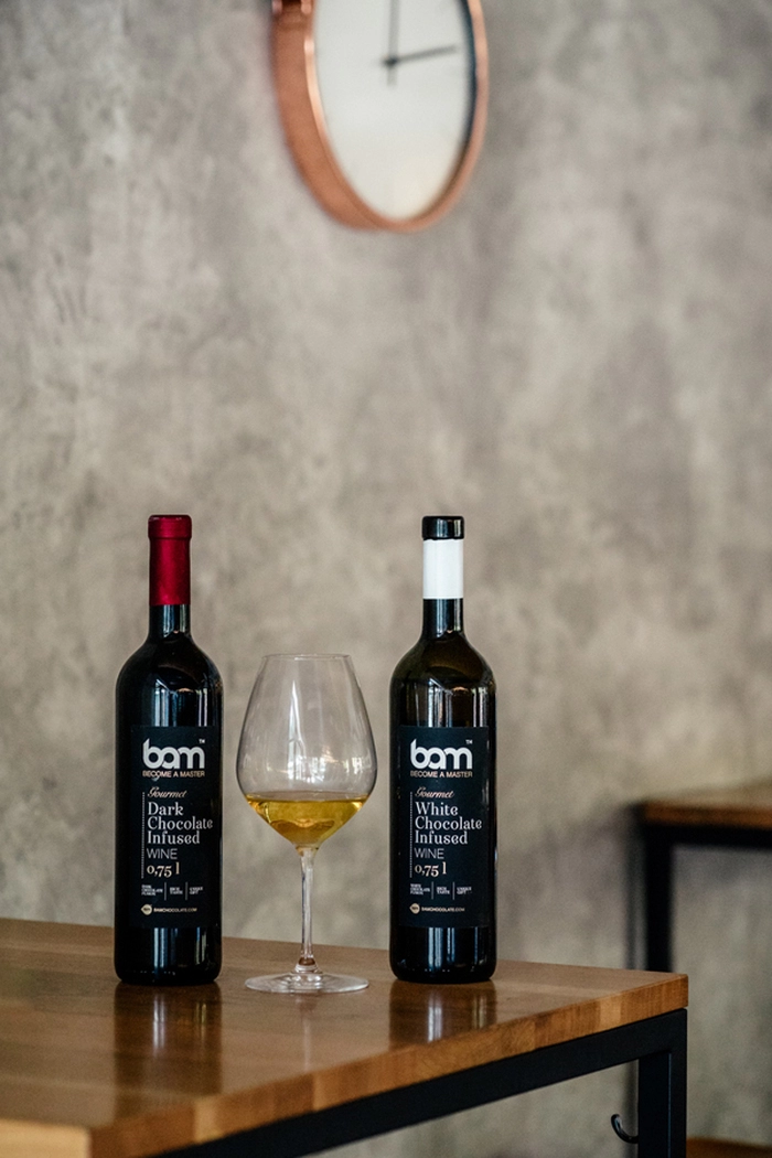 BAM belo čokoladno vino navduši s svojo zlato barvo in čokoladno-vinskim okusom. Izdelano je iz žlahtne, več let zorjene, bele vinske zvrsti iz sort Chardonnay, Sauvignon in Laški rizling ter obogateno z aromatično belo čokolado. Idealno ravnotežje sladkosti in lahkotnosti oplemeniti vsako zabavo, družinska praznovanja ali poletne večere na domači terasi. BAM belo čokoladno vino je desertna pijača in tako nepogrešljiva za popestritev romantičnih večerov v dvoje. Vino je izvrstno tudi kot dodatek v sladicah kot so vinski piškoti ali hruške v vinu.