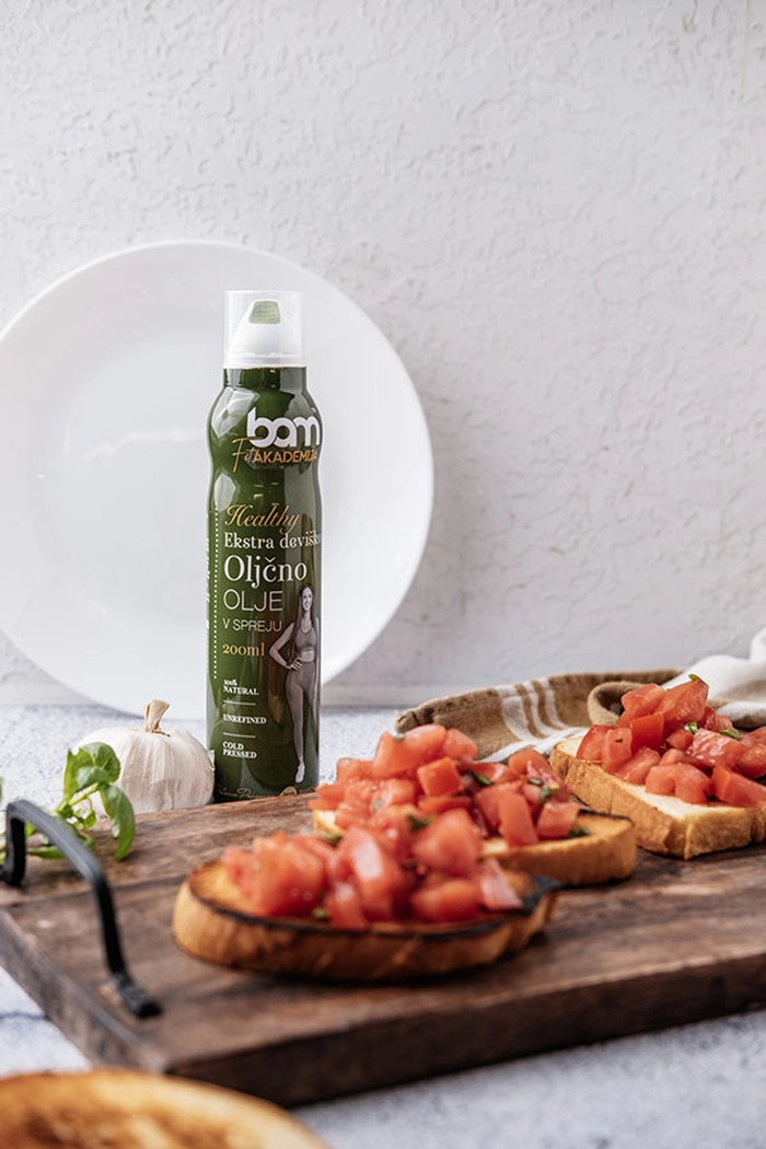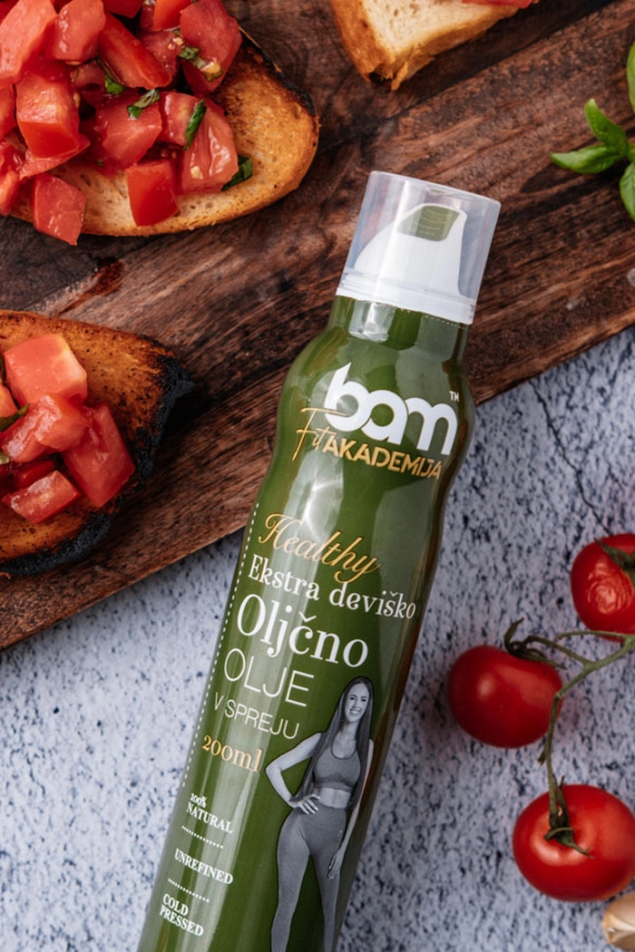 BAM ekstra deviško oljčno olje v spreju (200 ml) je nežne zelene barve, njegov vonj pa te popelje v poletje, k nasadom oljk in sveže pokošene trave. Domače olivno olje, prijetnega, rahlo grenkega okusa po olivah, pričara sočnost in pristnost slovenske Istre. Olivnemu olju ne pravijo zastonj tekoče zlato iz mediterana. Njegove odlike so, da je lahko prebavljivo, znižuje nivo holesterola v telesu in vsebuje veliko antioksidantov, zato ga uvrščamo med zdrave maščobe.