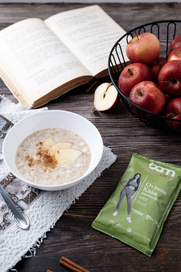FIT Zajtrk, Jabolčna pita, vsebuje 20 kosov BAM Oatmeal z okusom jabolčna pita. Ta mešanica predstavlja edinstveno kombinacijo okusov, ki spominjajo na sveže pečeno jabolčno pito, združeno z bogatimi hranilnimi vrednostmi ovesa. Ta mešanica zagotavlja ključne beljakovine in vlaknine, ki so potrebne za uravnoteženo prehrano. Omogoča vam, da svoj dan začnete zdravo in energično. Z BAM ovseno kašo z okusom jabolčne pite boste prejeli potrebno energijo za uspešen začetek dneva.