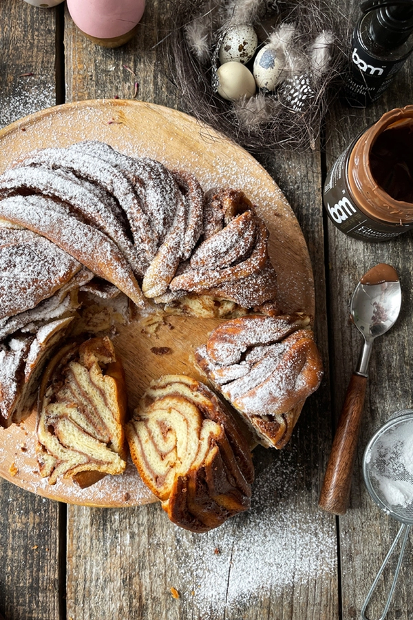Čokoladno-lešnikov namaz smo uporabili za pripravo čokoladnega recepta za odlično ferrero torto.