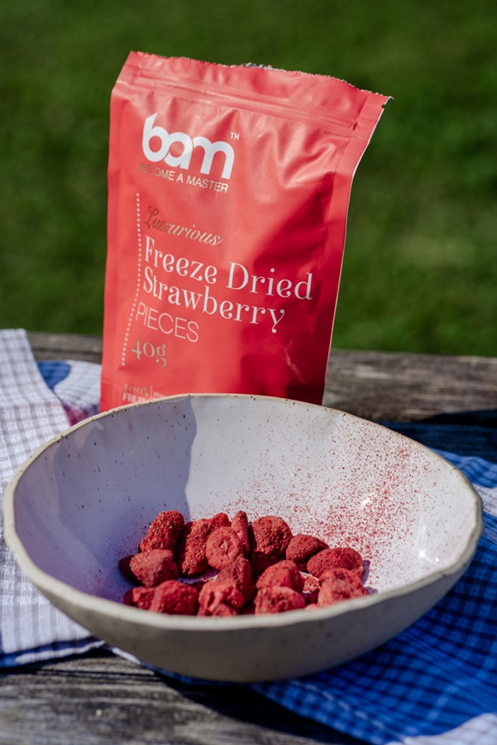 BAM liofilizirane jagode in sladka smetana ustvarita odlično jagodno kremo. Jagodno smetano lahko pripravimo iz svežih jagod ali uporabimo liofilizirane jagode. Obe različici imata neverjeten okus po jagodah in ustvarita puhasto jagodno ...
