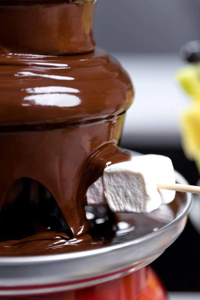 Za vse ljubitelje čokolade in zabave bo kot nalašč čokoladna fontana, ki bo poskrbela za najslajšo zabavo v krogu družine in prijateljev - pripravite »slap« čokolade v katerega boste lahko pomakali sadje, piškote in slaščice po želji.