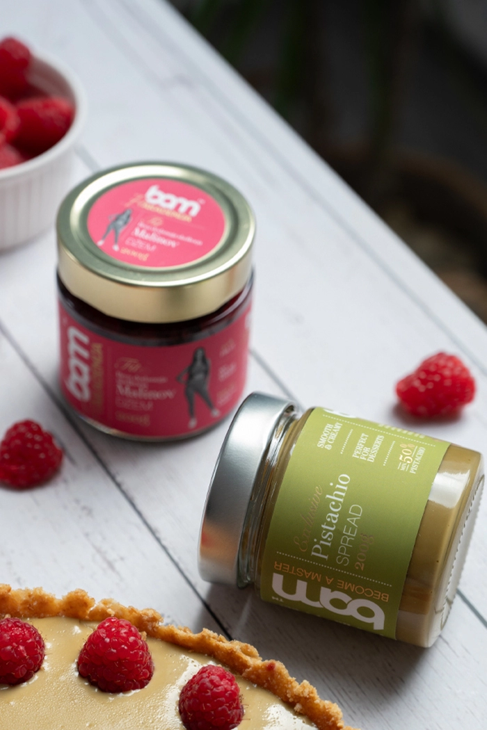BAM Vanilijeva pasta iz bourbonske vanilije z Madagaskarja je brez alkohola ter obogati okus in izgled vsake jedi. Zaradi praktičnega pakiranja v tubi, je pasta vedno sveža, njeno doziranje pa natančno. BAM Pistacijev namaz je znan po svoji kremasti teksturi in pristnem pistacijevem okusu. BAM Malinov džem brez dodanega sladkorja je poln antioksidantov, ki razvajajo brbončice s svežim okusom, hkrati pa telesu zagotavljajo vlaknine in vitamine, BAM Bela čokolada