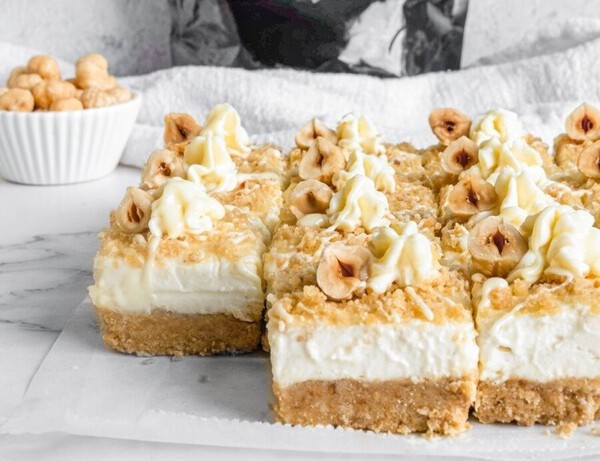 7 Prelijte čez dno iz piškotov in postavite v hladilnik za vsaj 2-3 ure. Po želji po vrhu dodatno posujte z zdrobljenimi lešniki in stopljeno čokolado.