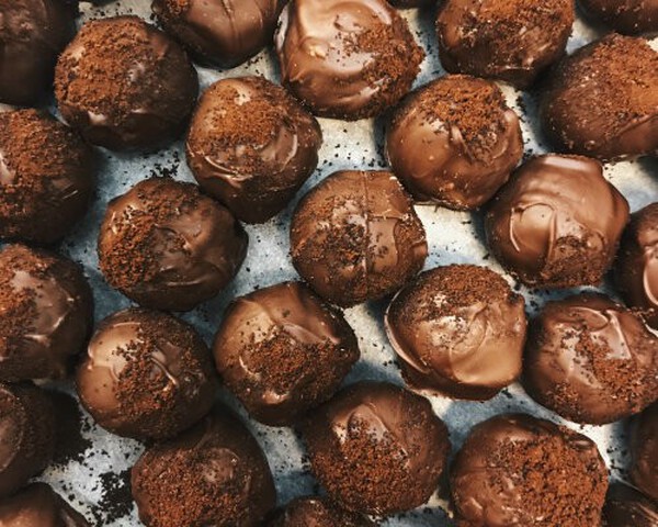 2 Iz pridboljene mase oblikujemo kroglice. Vsaka kroglica naj bo težka približno 15 g. Oblikovane kroglice položimo na pekač oblečen v papir za peko, katerega bomo skupaj s kroglicami čez noč postavili na hladno.