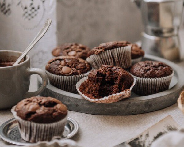 3 Pečemo med 15 do 20 minut oziroma dokler zobotrebec, ki ga vstavimo tik od sredine, ne bo čist. Pustimo, da se ohladijo. V pekaču jih ohlajamo med 5 do 10 minut. Potem jih prestavimo na rešetko, kjer naj se čokoladni mafini popolnoma ohladijo.