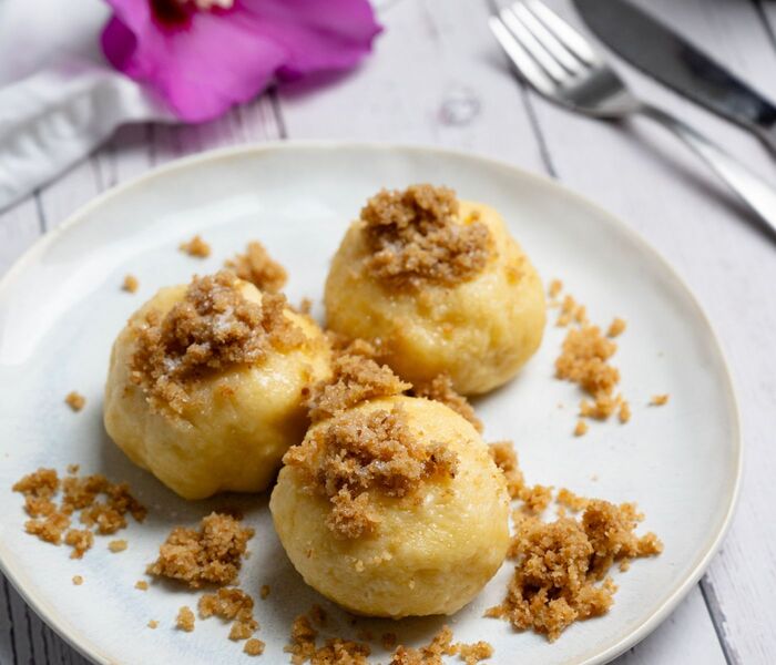 Kuhane cmoke odcedi in jih povaljaj v prepraženih drobtinah, nato jih posuj z malo sladkorja.