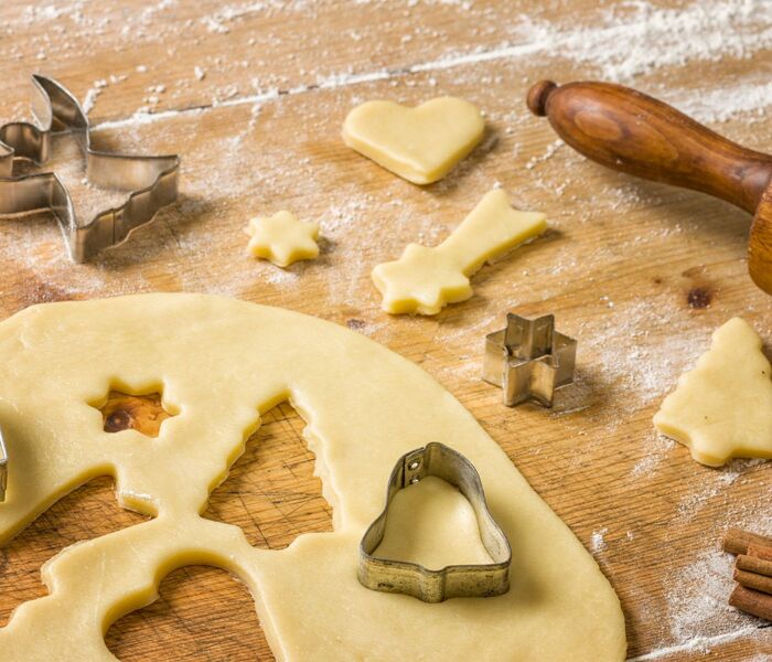 Testo z valjarjem razvaljamo na željeno debelino. Mi priporočamo, da jih rajši razvaljate na tanjše, saj so tako piškoti res delikatni. Piškote postavimo na pekač, obložen s papirjem za peko, pri čemer pustimo dovolj prostora med njimi.