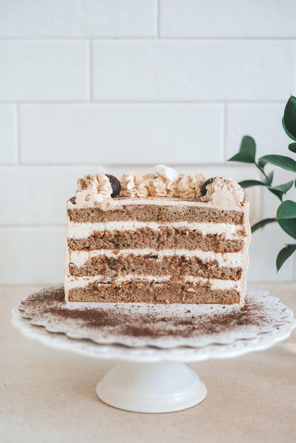 Testo vlijemo v pripravljen pekač za torto in z lopatko zgladimo vrh. Torto pečemo v ogreti pečici med 30 do 35 minut ali dokler zobotrebec, ki ga zapičimo v sredino, ne pride ven čist. Kolač vzememo iz pečice in ga pustimo med 10 do 15 minut, da se hladi v pekaču. Nato pa ga prenesemo na rešetko, da se popolnoma ohladi.