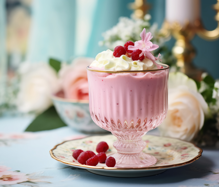 3 V drugo skledo nalijemo smetano in jo stepemo. Ko postane smetana gostejša, dodamo liofilizirane maline, ki smo jih pred tem zmešali v prah, vključimo še sladkor v prahu in nadaljujemo s stepanjem do trdne konsistence.