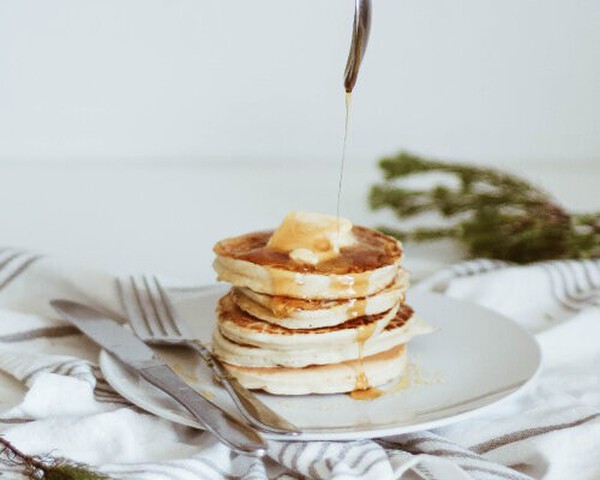 5 Veliko ponev segrejte in premažite z jedilnim oljem. Odvečno olje odstranite, sicer bodo palačinke imele pikčast vzorec. Z majhno zajemalko ali servirno žlico naredite visoko palačinko. Nato dodajte še eno merico mase na prvo palačinko. Nato z enakim postopkom dodajte zmesi za še dve palačinki. Nastavite celotni čas peke, to je med 6 do 7 minut. Pred tem jim dodajte še eno žlico vode v tri prazne prostore v ponvi in ​​pokrijte s pokrovom. Voda poskrbi, da bo palačinka puhasta in sočna. Po 2 minutah peke dodajte še eno merico zmesi za palačinke na vsak kupček. Pazite, da maso dodajate po višini in ne širini palačinke. Če je voda izhlapela, je dodajte še malo. Pokrijte s pokrovom in pecite naprej.